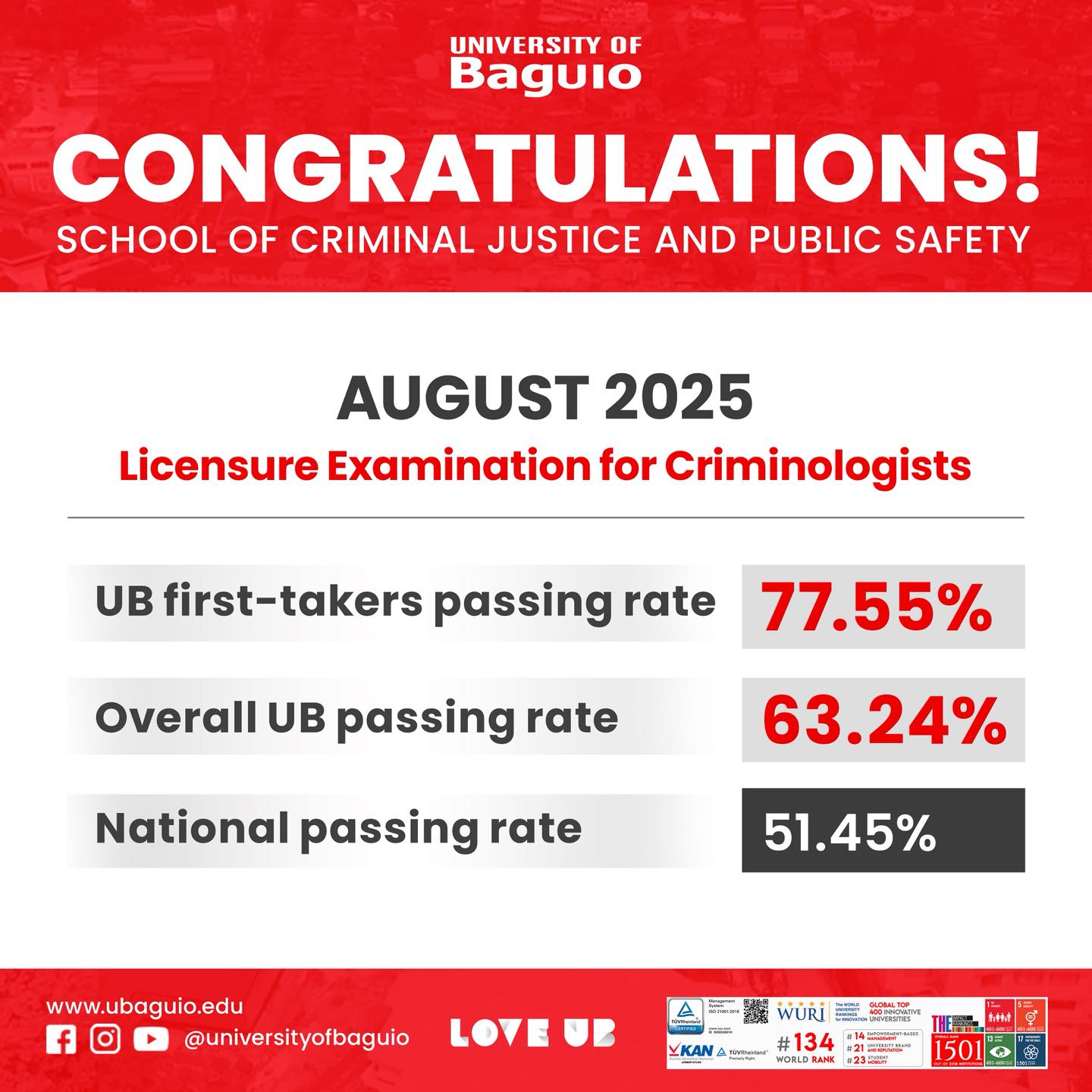 The School of Criminal Justice and Public Safety, headed by Dr. Charesma Grace K. Lud-ayen, adopted Pinget Elementary School, Barangay Pinget, Baguio City. This event highlights UB’s dedication to community service and student involvement, providing students with an opportunity to contribute to those in need.